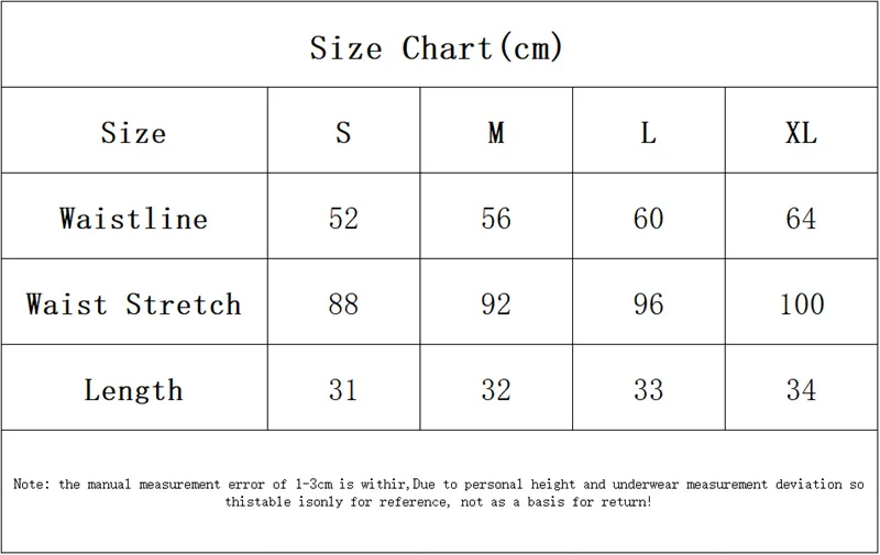S: waist 52cm, Waist stretch 88cm, length 31cm;